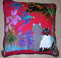 Broad A: Susan Lewis has been working with fabric for 30 years. Her creations have been sold in Neiman Marcus, I Magnin and Bonwit Teller. Currently she has work in galleries in San Francisco, Los Angeles, Cambria on the Central Coast of California, and San Diego. She does themes other than canines, e.g. felines, city designs, professions, and just about anything else you may want. Susan lives in Northern California with her partner Terry and their two Standard Poodles, Lulu and Miki.