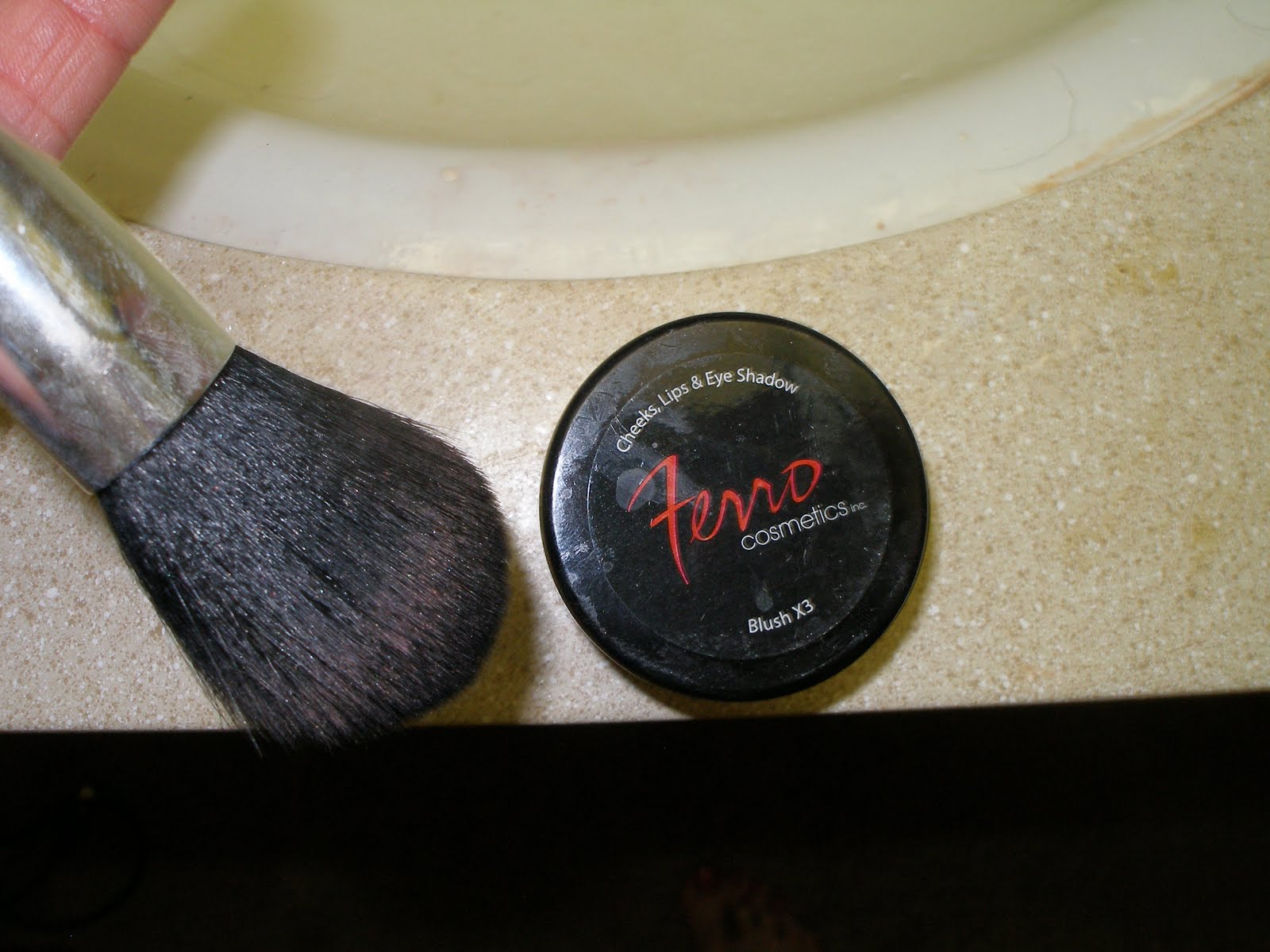 Now, for the Sneak Peak! The Berrilicious blush that I ordered is a slight pink, with undertones that made my cheeks glow without glaring. Also, one of the tips the Beauty Parlor offered was to apply the blush BEFORE putting on foundation and I couldn’t believe how natural the glow appeared on my face. The tips section is wonderful! Usually I apply a dab of lipstick to my cheek and rub it in, as I hate that red rosy glare that blush sometimes gives. Not with Ferro! With Ferro blush I get luminous without leaden. My cinnamon eye shadow required the lightest touch with my eye shadow brush, and the glitter is suggested, not BANG WHAM bright. Totally natural! And it stayed on all day and into the night.