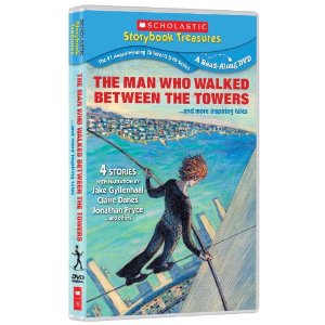The first story, based on the Caldecott Award Winning children’s book by Mordecai Gerstein, tells of a most amazing man, Philippe Petit. Philippe LOVED to juggle and to tightrope walk – just because he loved the freedom he felt when he performed. One day, Philippe decided to stretch a coil of rope between the Twin Towers in New York City – because he didn’t see the Towers – he saw the SPACE between the Towers – and craved to tightrope the space between them. He knew that the owners and the police would never allow him to do it, so he and some friends dressed as construction workers (this was when the Towers were still being built), disguised the coil in a huge box, and headed up to the 10th floor and above, where construction was still taking place. They waited till night, and then they speared the rope, wrapped by Philippe with tightrope wiring, and struggled until they had it between the towers, and tied off. In the morning as the sun rose and the gulls played in the wind spray currents, Philippe walked back and forth on the wire. As people below saw him, the police came and still Philippe walked, danced, and lay down upon the rope, way above the sky and gulls hovering above him. When he finally walked to the end of one of the Towers he was taken into custody. The judge gave him a wonderful sentence: he was to high wire in Central Park to all the children of the City. Philippe performed his walk in 1974, and as we approach the 10 year anniversary of 9/11, there is no better tribute for children to remember than the man who walked between the towers, and showed everyone the beauty of his dream, his passion and his courage. Stunningly narrated by Jake Gyllenhaal, Chas and I could not take our eyes off the screen!