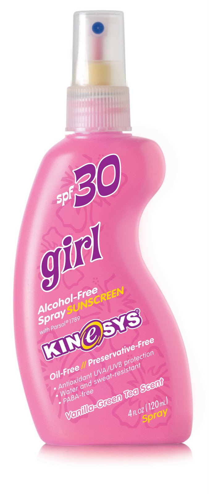 My dermatologist told me that spray on sunscreens are the best way to go – they cover better. AND – he also suggested KINeSYS (hence this review!). I loved the “girls” sunscreen – grand-daughters loved the pink bottle and “just for girls” label. I loved not having to fight with them to apply sunscreen. Libby, my 9-year old grand-daughter, stole the mango-scent, but the unscented spray is mine, all mine!