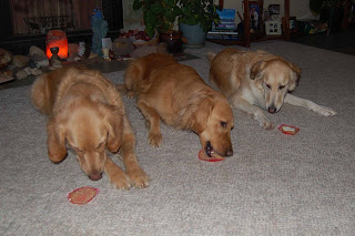 This is easy enough for my grandkiddles to do! AND as you can see in the picture, these Goldens couldn’t wait to hear that they could WOLF down their delicious cupcakes.
